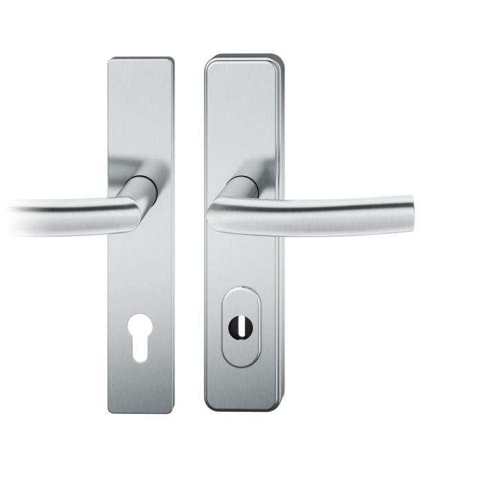 Startseite Türbeschläge FSB Sicherheitsbeschläge Druecker-Grt. li PZ 92mm S2 | Langschild eckig ZA. | Stift 10mm |Edelstahl fein matt