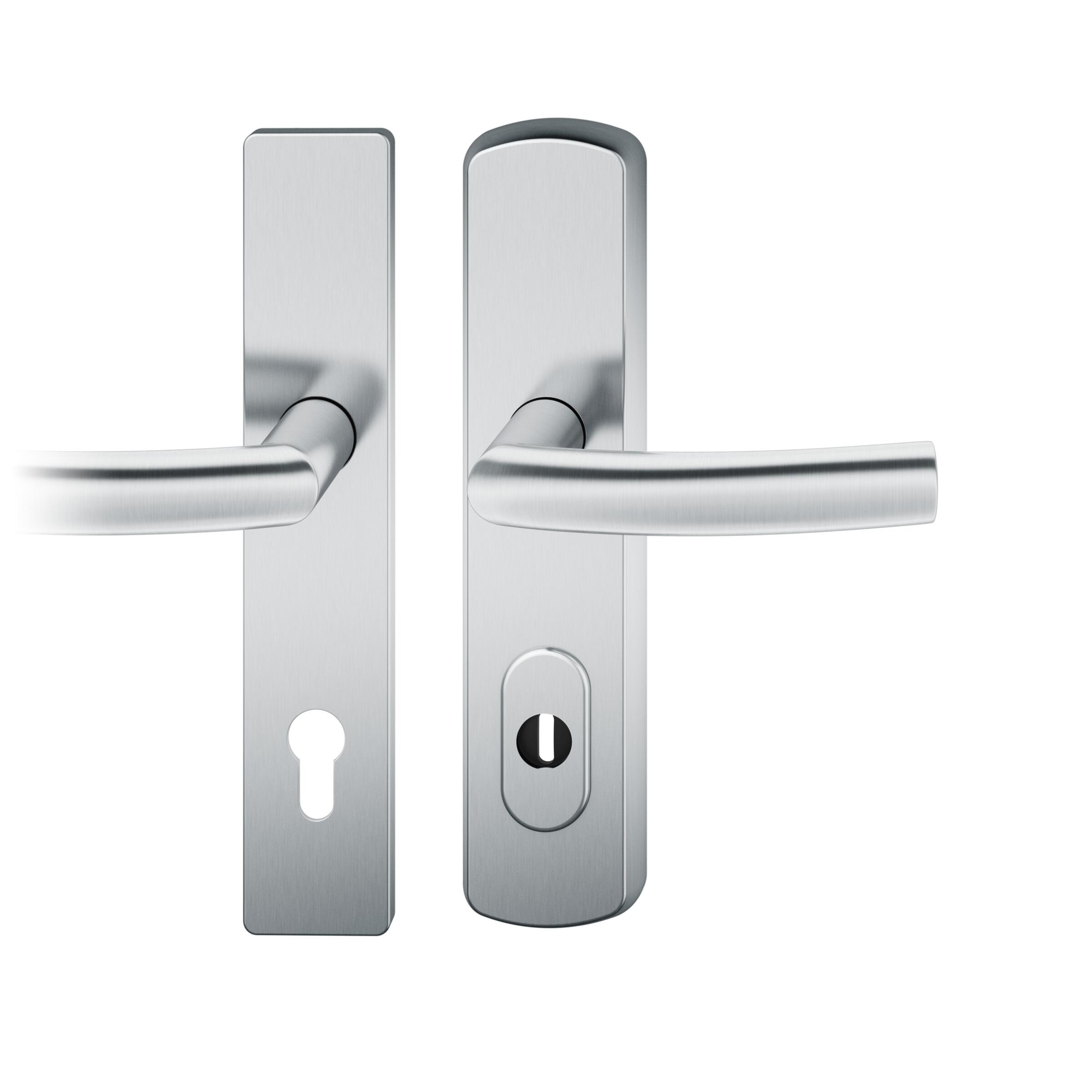Startseite Türbeschläge FSB Sicherheitsbeschläge Druecker-Grt. li PZ 92mm S2 | Langschild ZA | Stift 10mm |Edelstahl fein matt
