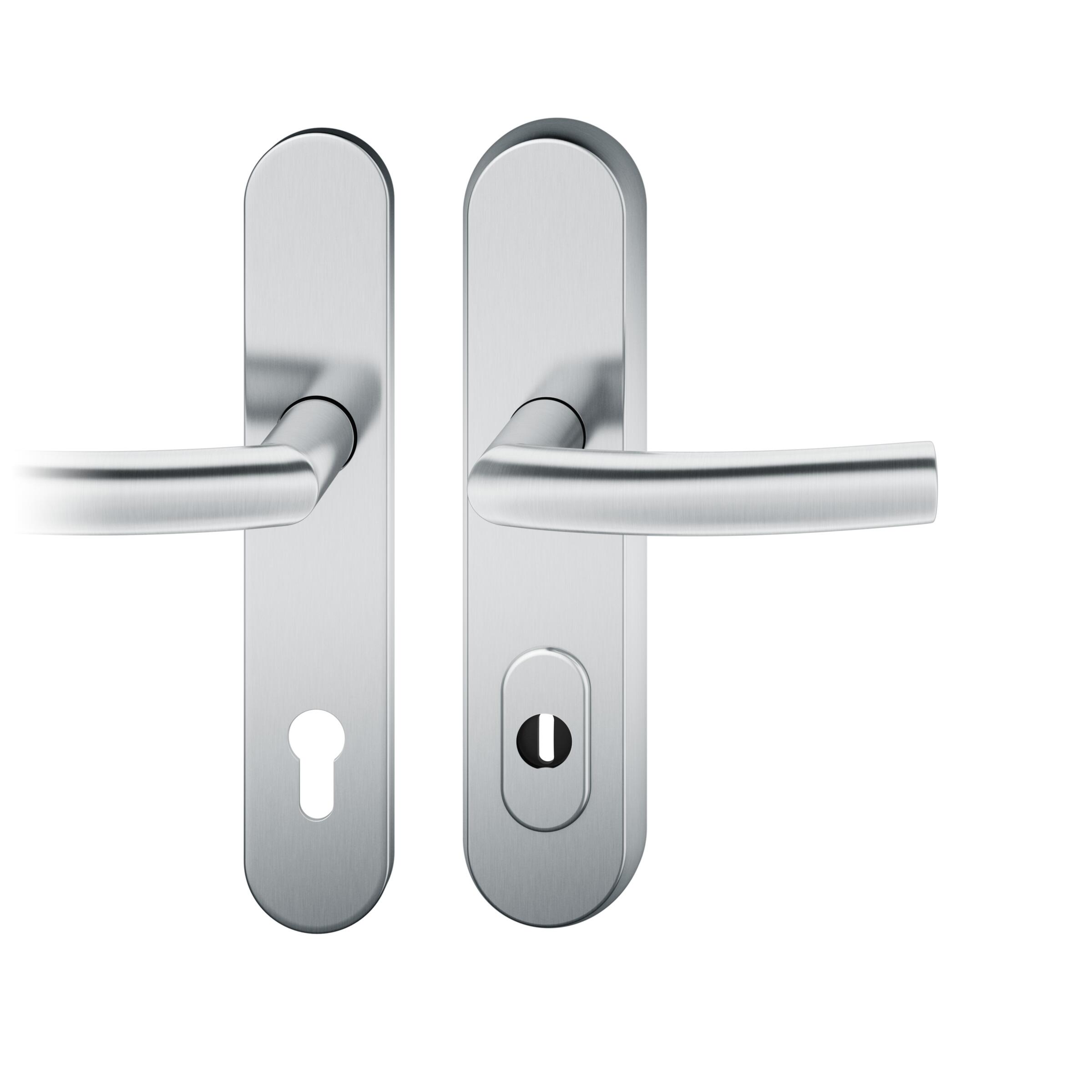Startseite Türbeschläge FSB Sicherheitsbeschläge Druecker-Grt. li PZ 92mm S2 | Langschild ZA | Stift 10mm |Edelstahl fein matt