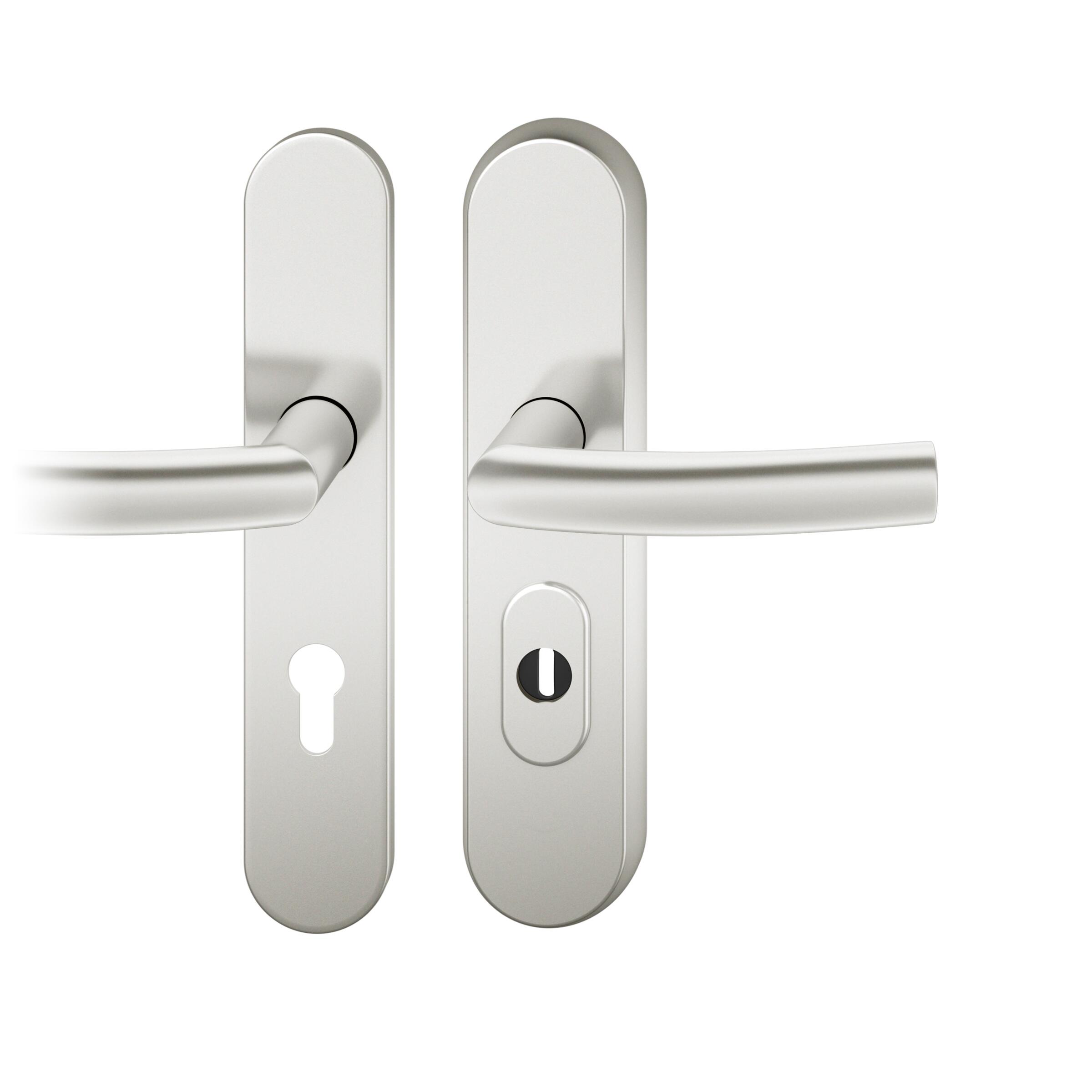 Startseite Türbeschläge FSB Sicherheitsbeschläge Druecker-Grt. re PZ 72mm S2 | Langschild ZA | Stift 8mm |Aluminium naturfarbig