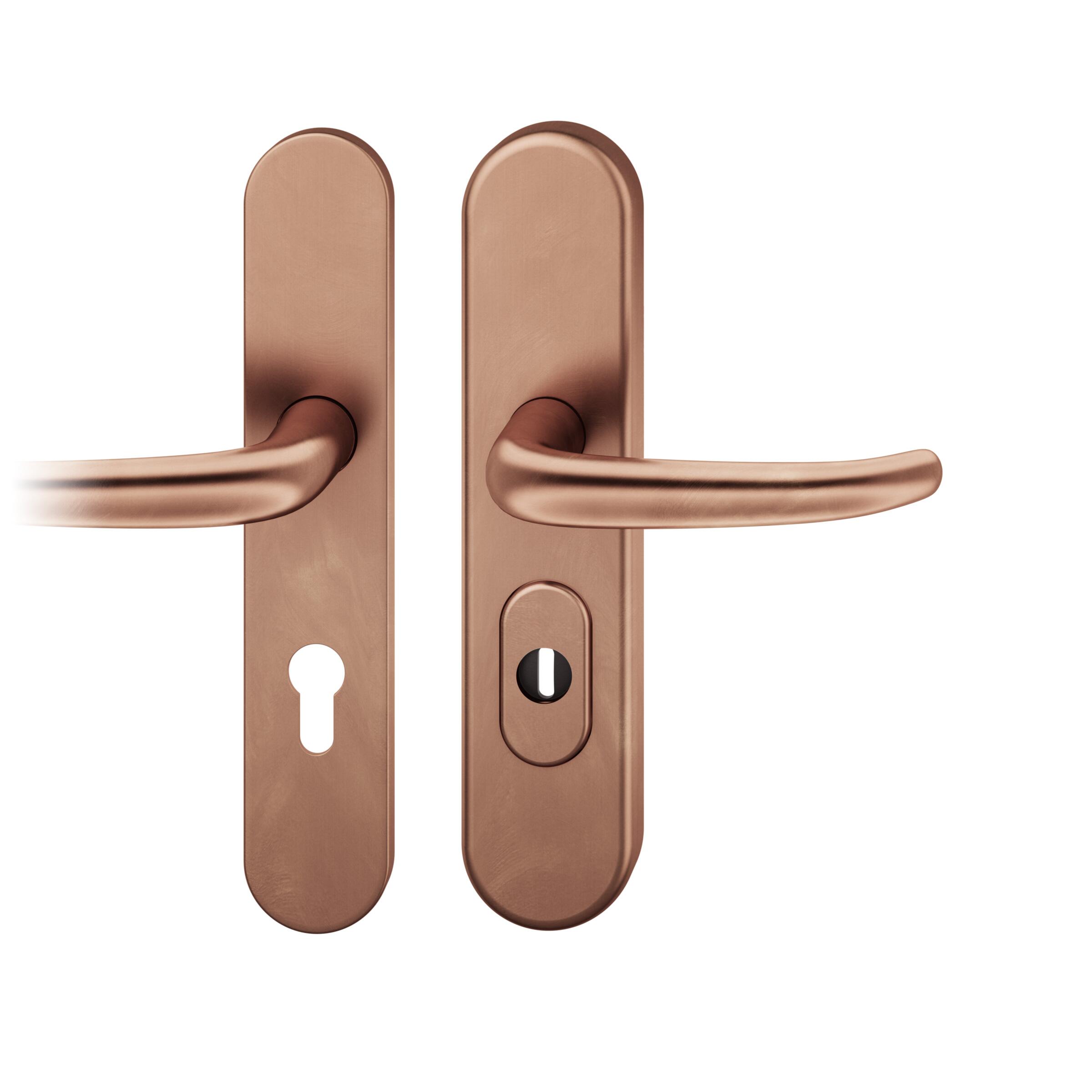 Startseite Türbeschläge FSB Sicherheitsbeschläge Druecker-Grt. re PZ 72mm S2 | Langschild ZA | Stift 8mm |Bronze hell patiniert gewachst