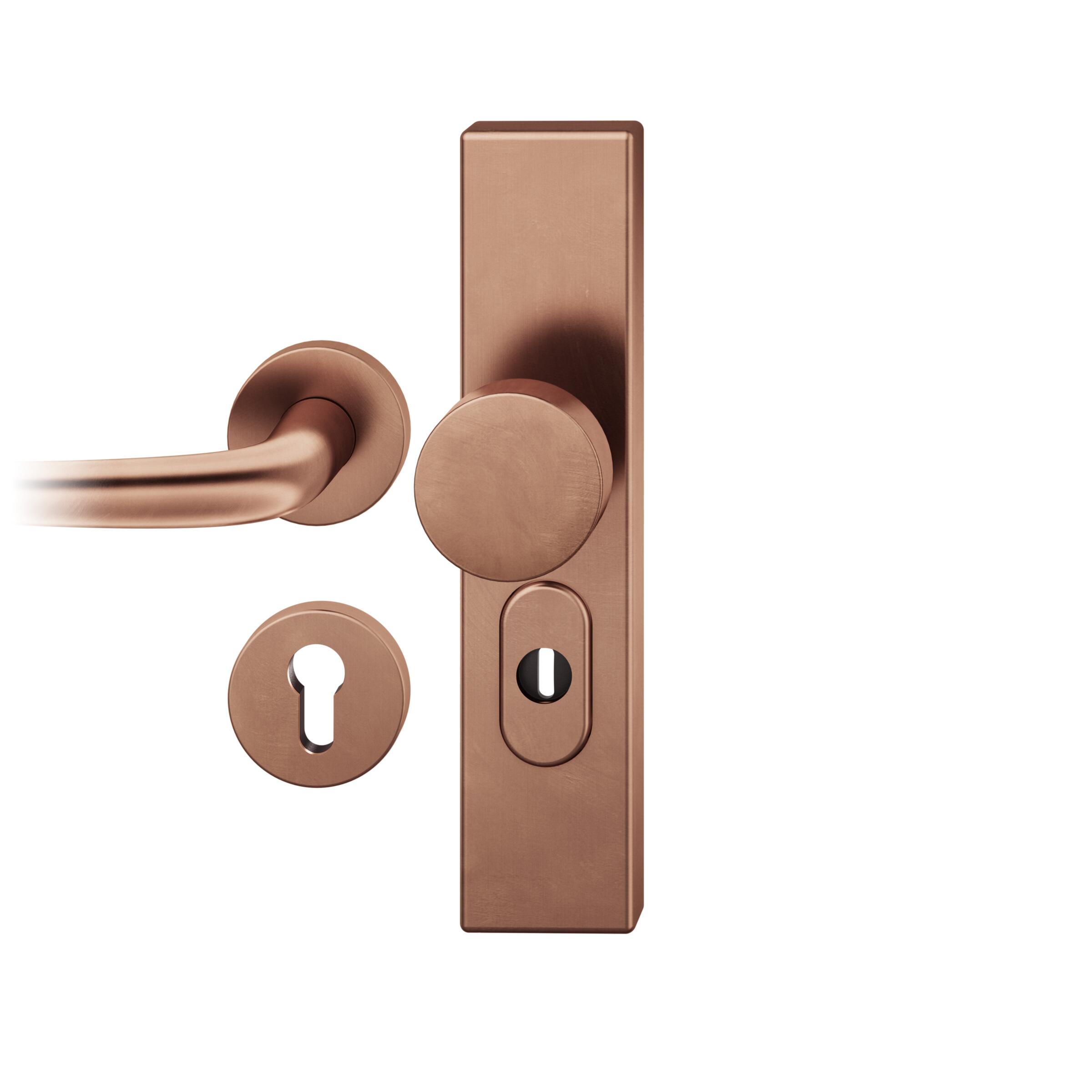 Startseite Türbeschläge FSB Sicherheitsbeschläge FS-Wechsel-Grt. PZ 72mm Ros.S2 | Langschild ZA. Druecker 1023 | Innenseite Ros.. Stift 9mm |Bronze dunkel patiniert gew.