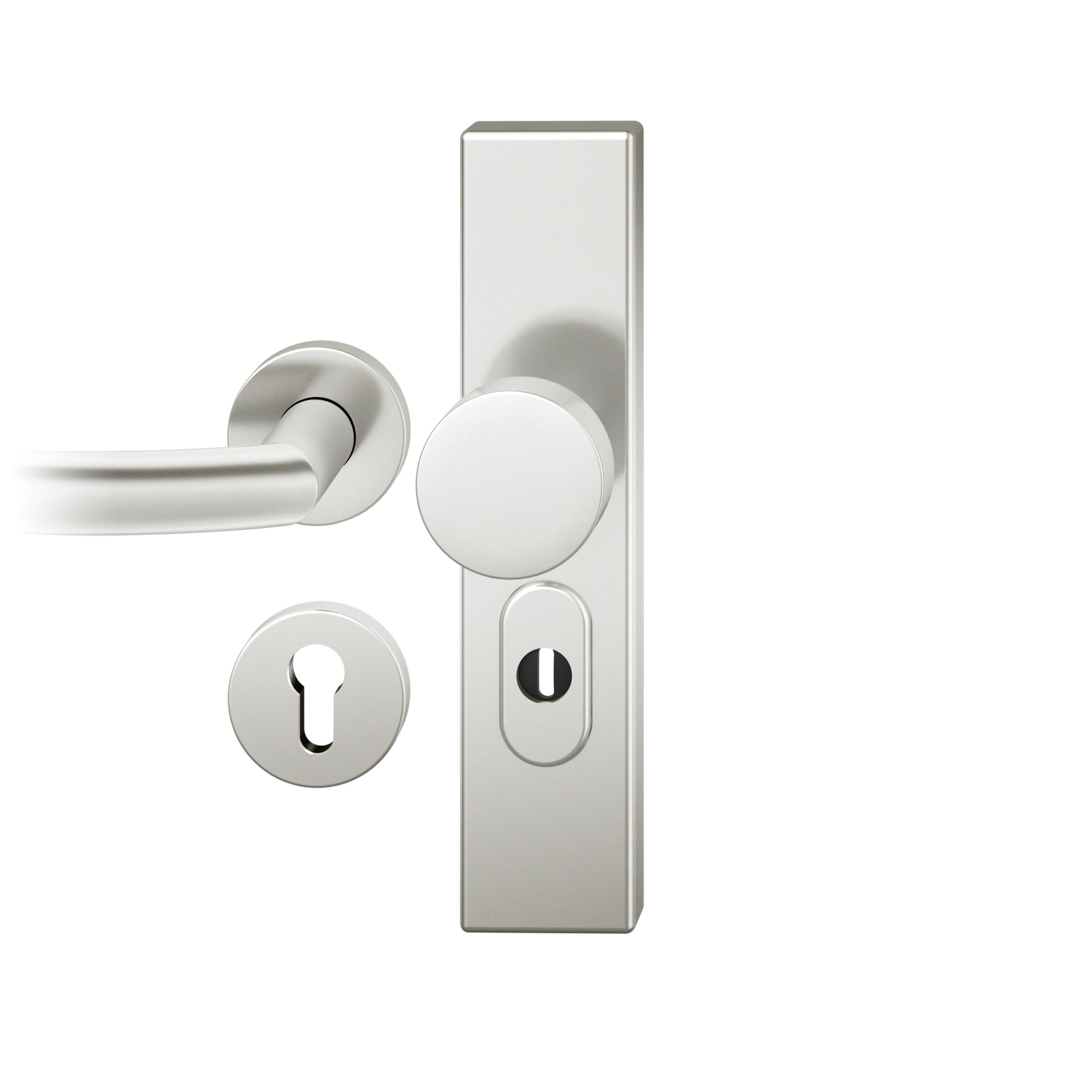 Startseite Türbeschläge FSB Sicherheitsbeschläge Wechsel-Grt. PZ 72mm Ros. S2 | Langschild ZA. Stift 8mm | Innenseite Rosette |Aluminium naturfarbig