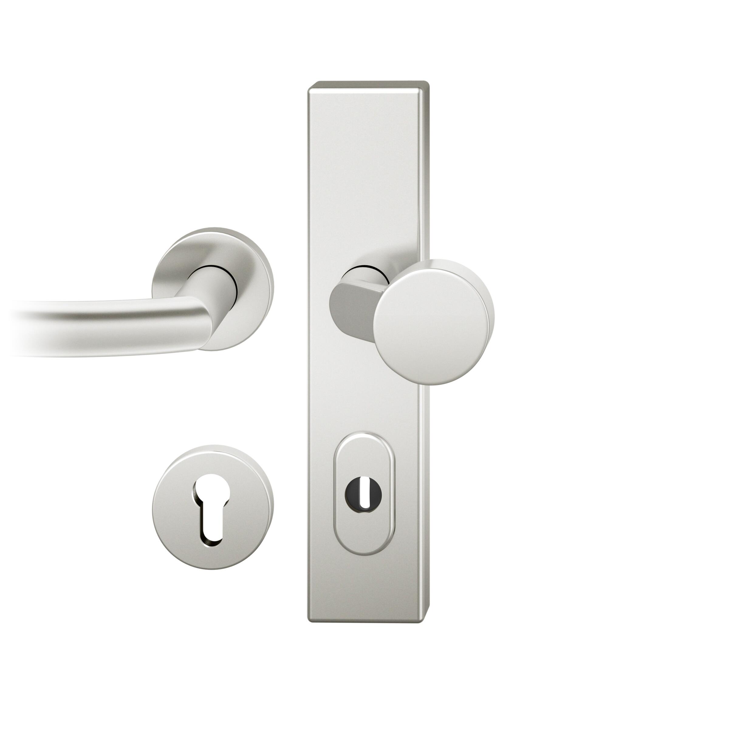 Startseite Türbeschläge FSB Sicherheitsbeschläge Wechsel-Grt. PZ 92mm Ros. S2 | Langschild ZA. Stift 10mm | Innenseite Rosette |Aluminium naturfarbig